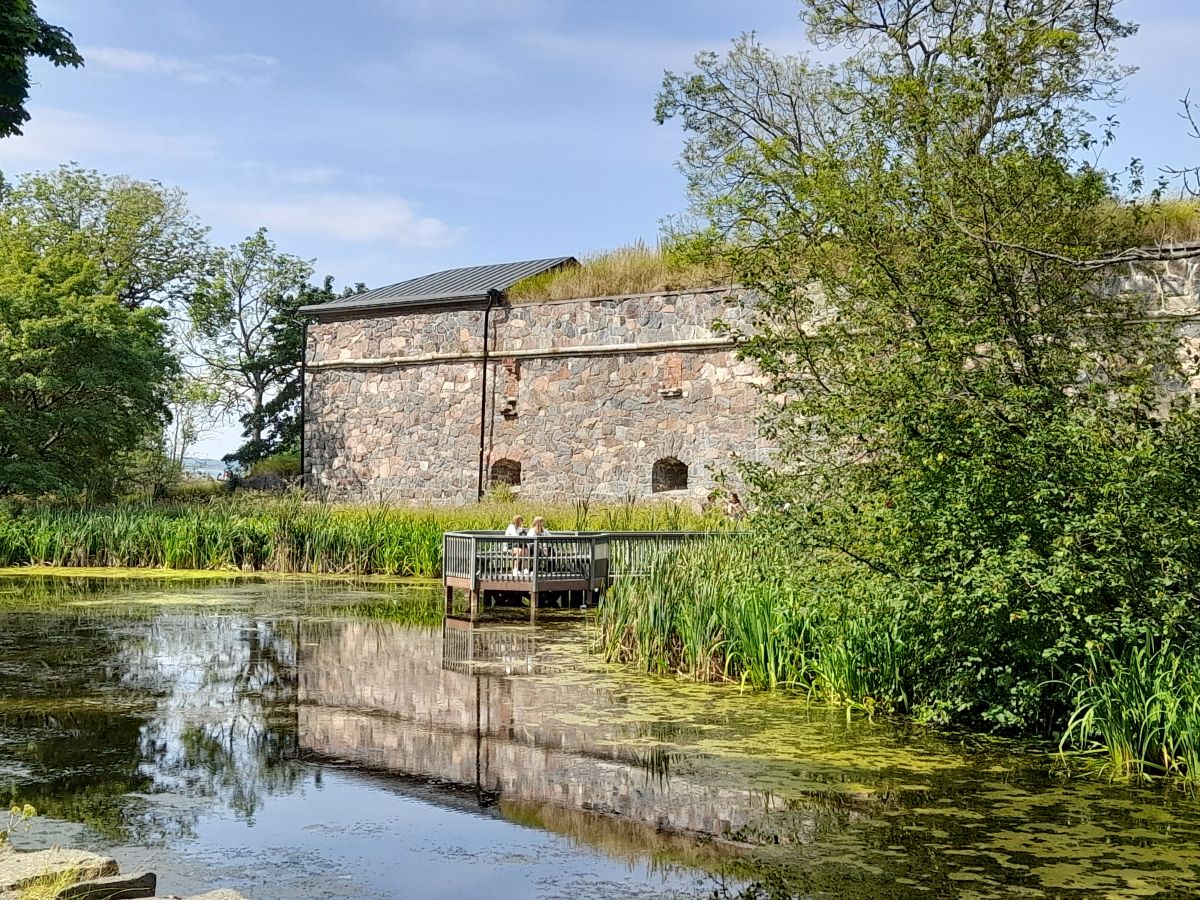 Part of old fortress wall in Piper’s Park, located within the Suomenlinna sea fortress in Helsinki, Finland. Suomenlinna Fortress is a UNESCO World Heritage site.